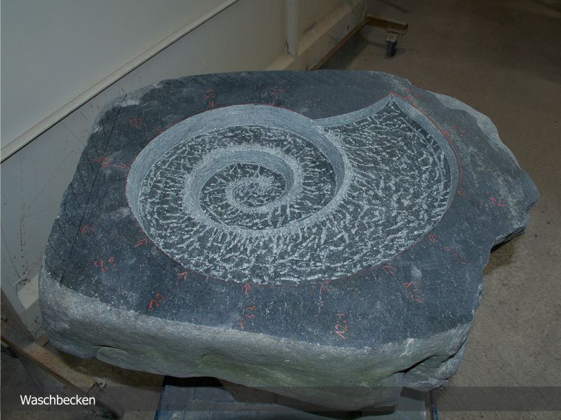 Natürlich muss bei solchen Objekten sehr genau gearbeitet werden, denn weder bei einem Türportal noch bei einem auf den Millimeter genau eingepassten Waschtisch dürfen Fehler vorkommen. Als Meisterbetrieb planen wir das Produkt bis ins kleinste Detail, um es dann mit computergesteuerten Fräsen aus dem Steinblock herauszuarbeiten. Danach erfolgt die weitere Bearbeitung wie das Schleifen und Polieren der Oberflächen, bis wir die von uns angestrebte Perfektion erreicht haben.